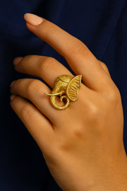 Antique Elephant Adjustable Ring – Gold Finish Temple Jewellery