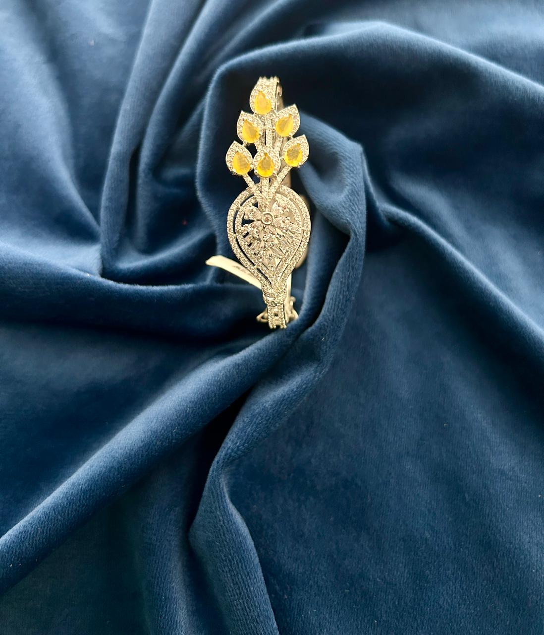 This Elegant Openable CZ Diamond Bracelet is designed for women who love modern elegance with a hint of colour. Featuring premium CZ diamonds and beautiful yellow tear-drop stones, this bracelet shines beautifully on festive, party, and western outfits.