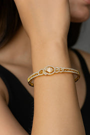 Elevate your jewellery collection with this Golden Openable Bracelet featuring intricate designer CZ stone detailing. The bracelet showcases a unique blend of geometric and floral-inspired patterns, highlighted with shimmering cubic zirconia for a luxurious look. Its openable design ensures comfort and convenience, fitting wrist sizes 2.4 to 2.6 with ease. Perfect for weddings, festive occasions, parties, or gifting, this bracelet adds sophistication and elegance to every outfit.