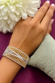 Premium Two-Tone American Diamond Designer Openable Bracelet Gold & Silver Finish