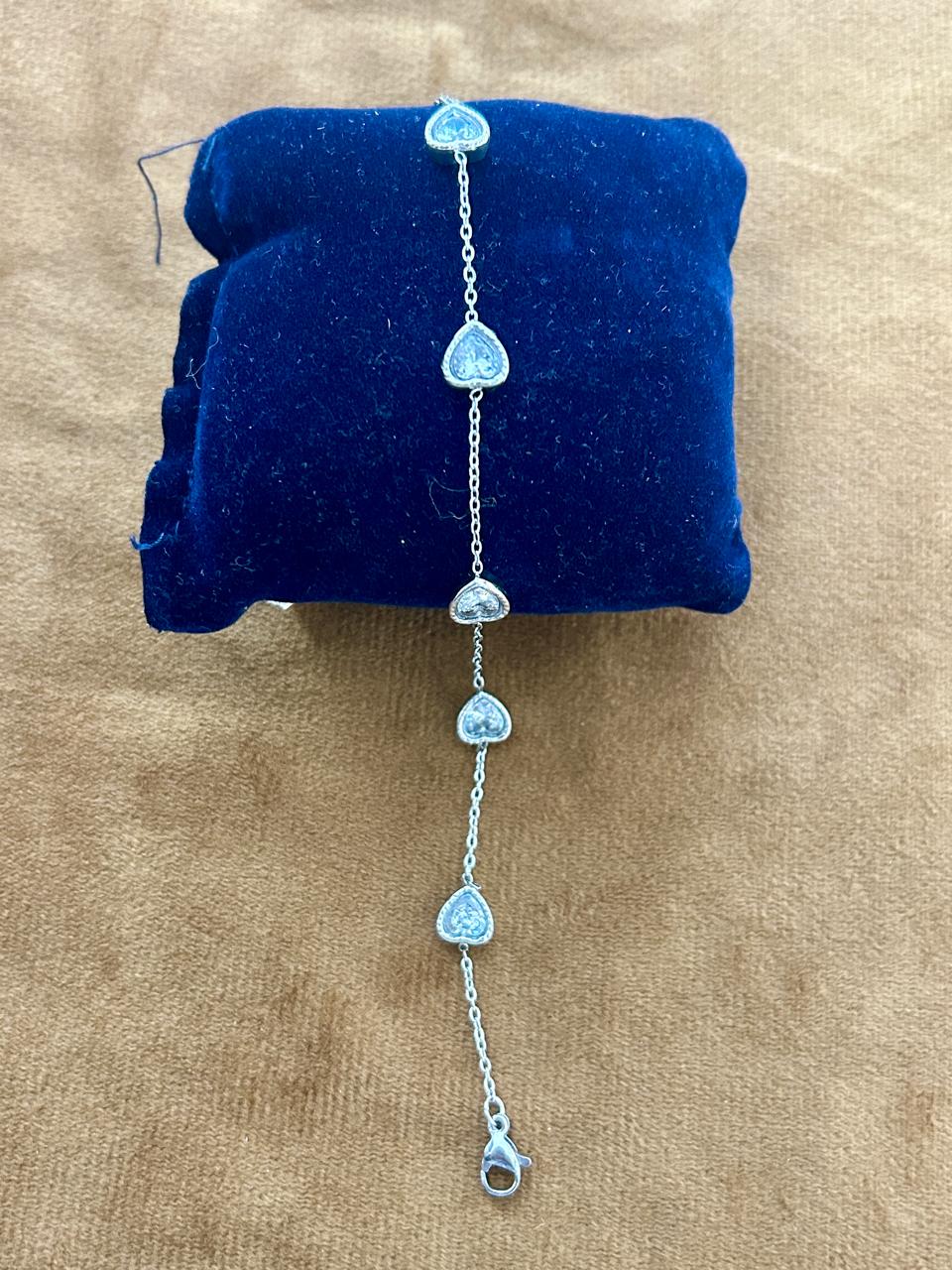 Each heart features a brilliant CZ stone that reflects light beautifully, giving the bracelet a premium, real-diamond look.