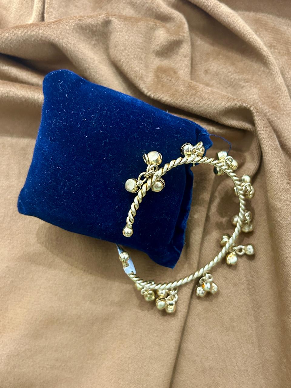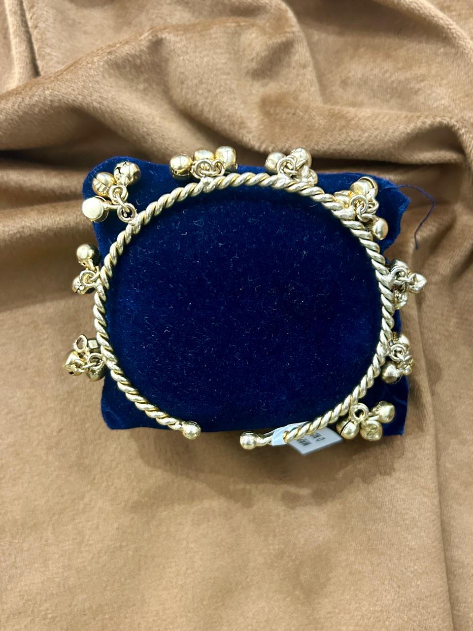 Crafted with a classic twisted design and detailed with multiple ghungroo-style dangler charms, this kada adds a festive and traditional touch to any outfit.