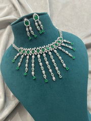 Emerald Green Waterfall Diamond Necklace Set | Premium CZ Jewellery