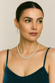 Golden Single Line CZ Diamond Necklace Set with Long Dangling Earrings