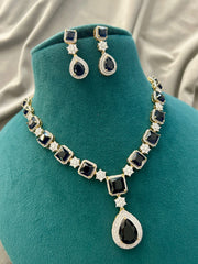 Luxury Black Stone Diamond Look Necklace Set