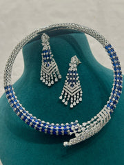 Sapphire Blue & Diamond Choker Necklace Set with Long Earrings – Premium CZ Jewellery