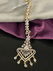 Diamond Look Maang Tikka with Golden Finish & Triangle Drop Design