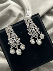 Floral Diamond Pearl Drop Earrings | Premium Party Wear AD Earrings