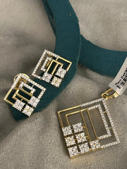 Add a bold contemporary twist to your look with this striking geometric pendant set. Designed with clean square frames and studded with sparkling CZ diamonds, this piece reflects minimalistic elegance. Paired with matching earrings, it’s perfect for modern outfits, office wear, or gifting.