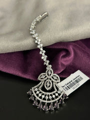 Silver Diamond Look Maang Tikka with Lavender Stone Drops