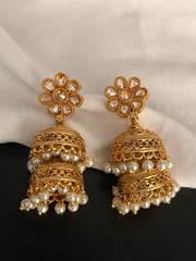 Traditional Gold Plated Jhumka Earrings with Pearl Drops