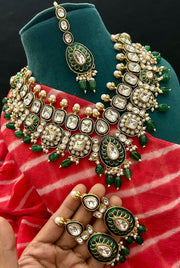 Emerald Green Kundan Bridal Necklace Set with Earrings & Maang Tikka