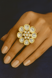 Floral Kundan Statement Ring – Adjustable Designer Ring