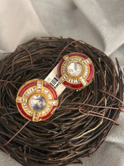 Make a bold and elegant statement with our Red Enamel Round Stud Earrings, featuring a radiant diamond-look center surrounded by dazzling baguette stones and traditional red enamel work. The intricate golden detailing and classic circular shape add a touch of royalty to any festive or traditional outfit. Lightweight and stylish, these earrings are a must-have for every jewellery collection.