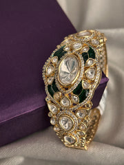 Royal Kundan Polki Bracelet with Green Meenakari Accents