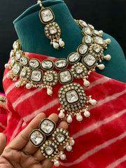 Royal White Kundan Bridal Choker Set with Earrings & Tikka