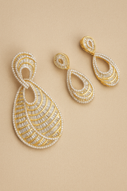 The matching earrings are crafted in the same designer teardrop motif, making the set perfect for weddings, parties, festive functions, and gifting.