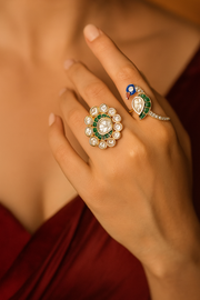 Dual Design Kundan Peacock Ring – Adjustable Statement Ring