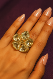 Floral Kundan Adjustable Ring – Clear Stone Flower Design
