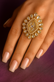 Pearl & Kundan Adjustable Ring – Royal Ethnic Statement Jewellery