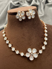 Grace your neckline with this Elegant Floral Kundan Necklace, a timeless piece that blends simplicity with sophistication. Featuring delicate kundan stones arranged in a charming floral motif, this necklace adds a touch of understated luxury to any outfit. Perfect for festive celebrations, weddings, or evening events, its lightweight design ensures comfort while maintaining a royal allure. A must-have for every jewellery lover’s collection.