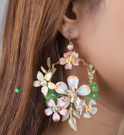 Pastel Bloom Oversized Floral Hoop Earrings – Designer Statement Piece