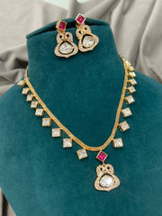 Square Cut Diamond Look Necklace Set with Ruby Accents