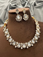 Elevate your traditional look with this Classic Polki Kundan Necklace Set, a timeless design that radiates royal sophistication. Adorned with uncut polki-style stones and intricate gold plating, this set exudes elegance and grace. The matching earrings complete the look, making it a perfect choice for weddings, festive occasions, or ethnic celebrations. Lightweight yet luxurious, this necklace is designed to make every outfit shine